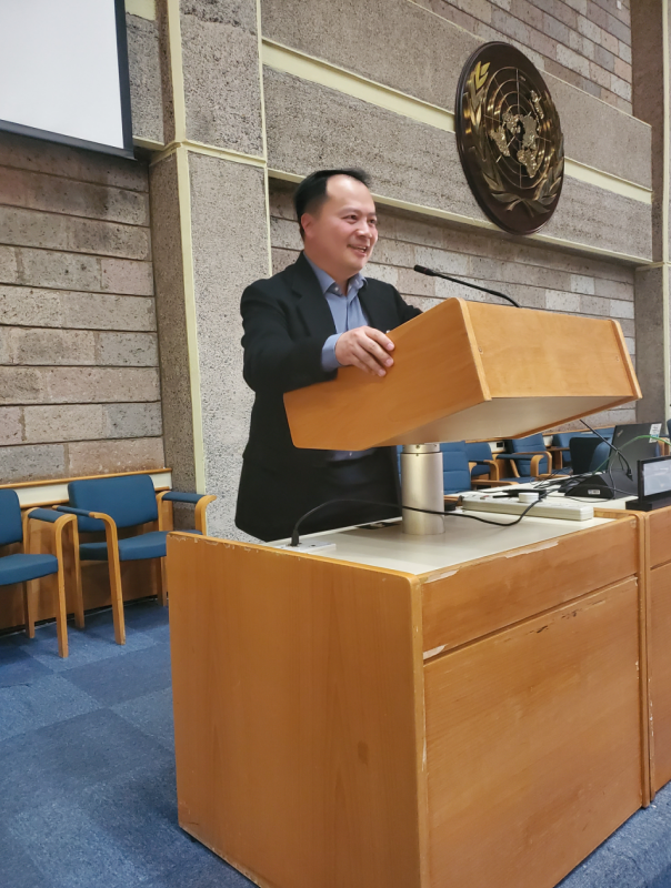 2024年5月,陈德安教授代表UNGP在联合国总部发表首次官方英文演讲,呼吁全球协同落实SDGs,强化多边体系下的行动力;